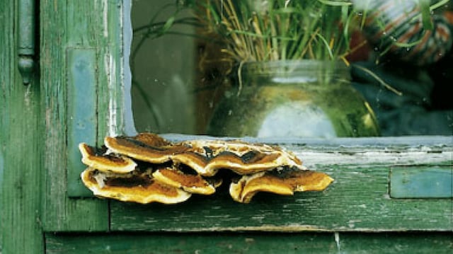 Es wird zwischen holzzerstörenden und holzverfärbenden Pilzen (z. B. Bläue) unterschieden. Holzzerstörende Pilze wie z. B. Porlinge oder Schwämme entstehen bei einer feuchten Umgebung (ab > 20 % Holzfeuchte). Die Pilzgeflechte durchziehen das Holz und zerstören seine Substanz. Das Holz muss in aufwendigen Renovierungsarbeiten großflächig ersetzt werden.