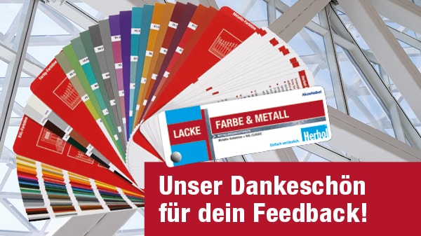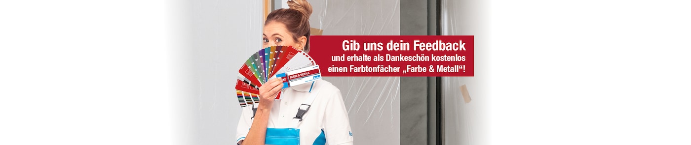 Als Dankeschön für deine Teilnahme an unserer Kundenumfrage schenken wir dir einen Farbtonfächer „Farbe & Metall“.
